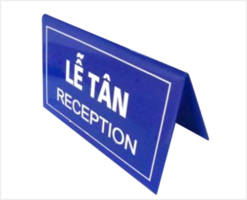 Biển chức danh lễ tân thường được thiết kế khác với các biển chức danh ở các bộ phận khác bởi biển chức danh lễ tân thường dành cho các nhận viên lễ tân bởi vì bộ phận lễ tân là một trong những bộ phận giao tiếp với khách hàng nhiều nhất. Vì vậy, biển chức danh cho quầy lễ tân cũng phải sang trọng, đẹp, phù hợp với nhu cầu của quý khách hàng.