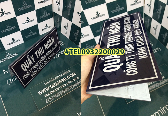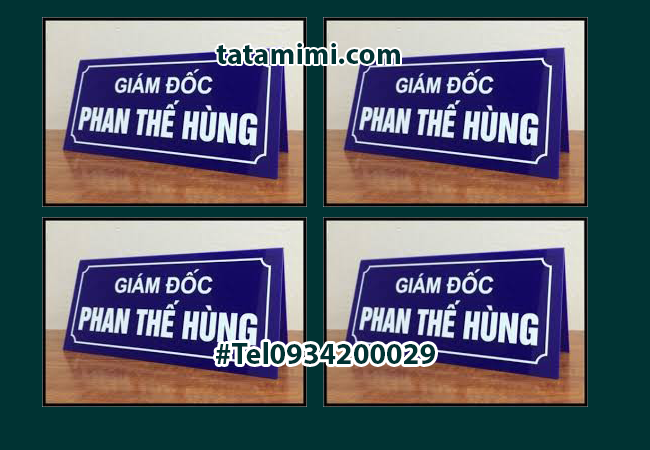Biển chức danh mica hay kệ chức danh mica là dòng sản phẩm được rất nhiều công ty, tổ chức, nhà hàng sử dụng bởi sự tiện ích và đơn giản của nó. Kệ chức danh mica để bàn kiểu chữ A, thường được làm bằng mica trong suốt dày từ 2 – 3mm tùy theo kích thước mà ta lựa chọn độ dày của mica. Đây là loại biển dùng rất phổ biến trong công ty, nhà hàng , khách sạn… đôi khi còn được sử dụng ở các hội trợ, triển lãm giới thiệu sản phẩm để ghi thông tin của sản phẩm.