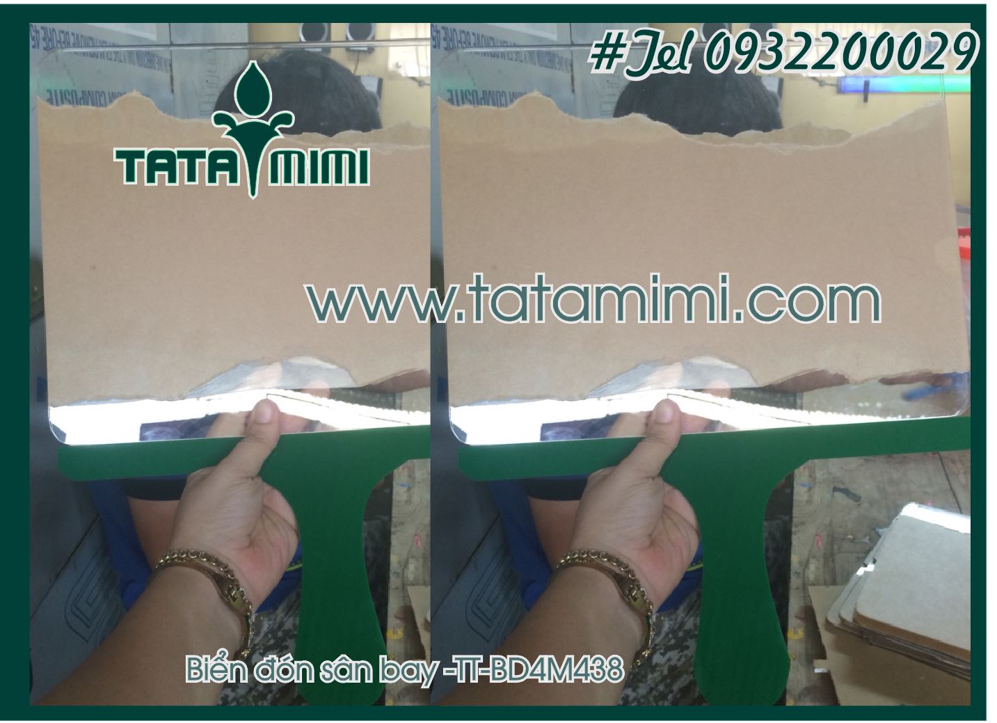- Biển đón sân bay tay cầm mica màu trắng sữa
