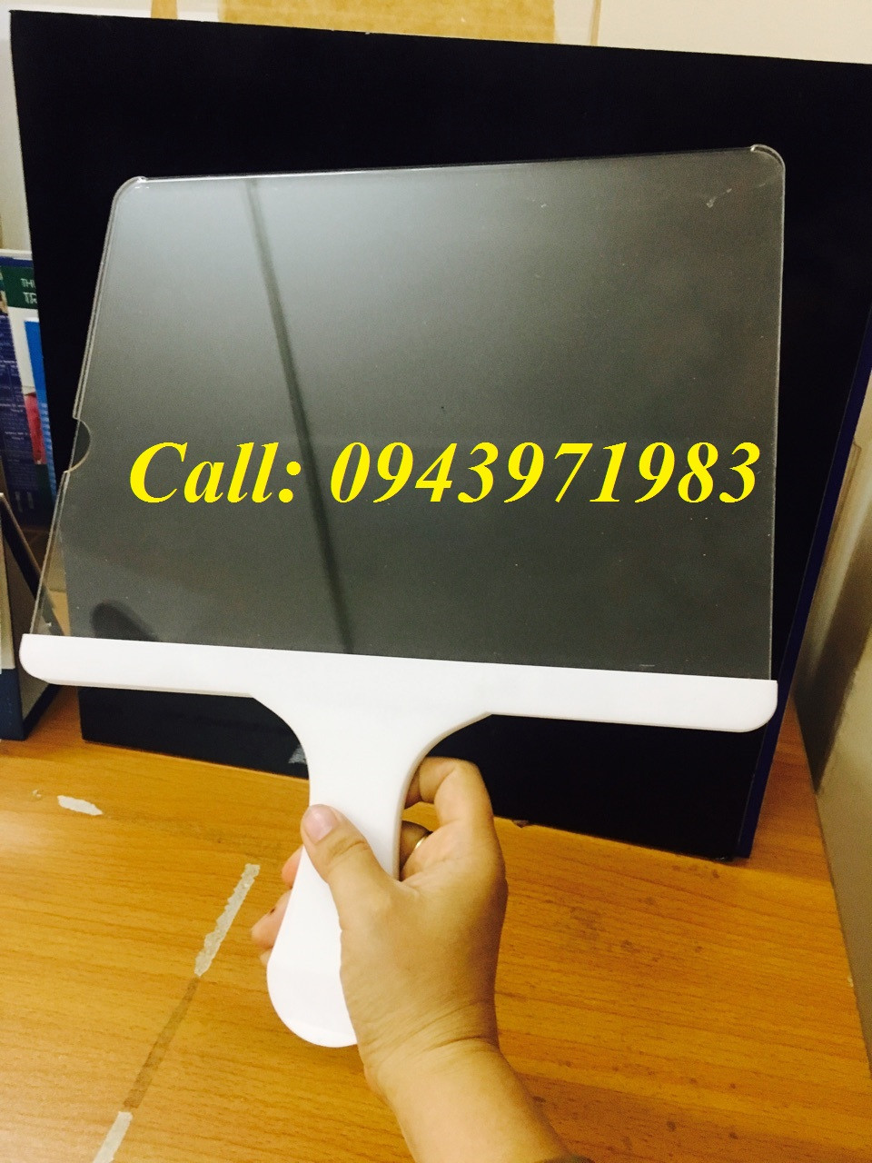 Được sử dụng chất liệu Mica Đài Loan trong suốt, biển đón sân bay cầm tay ngày nay đang được rất nhiều người sử dụng. Việc đặt mua một chiếc biển đón không phải khó, nhưng để làm theo yêu cầu của mình và có thể nhét vừa nội dung của khổ giấy không phải đơn vị nào cũng làm được. Chúng tôi, đơn vị chuyên nhận làm theo yêu cầu, thiết kế, dán chữ in logo lên trên biển đón cầm tay theo mong muốn của quý khách hàng.
