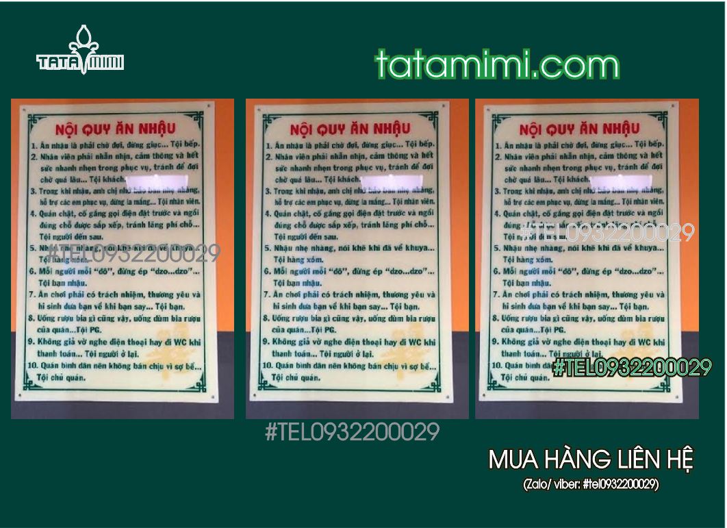 Mẫu Biển Nội quy in trực tiếp (in UV lên mica)