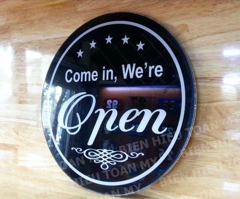 Biển open/closed được làm từ mica,inox có đặc điểm là đẹp ,sang trọng,phù hợp với từng phòng ban ,đơn vị,cửa hàng,…Biển open dùng để thông báo giờ đóng ,mở cửa có độ dày 6mm.