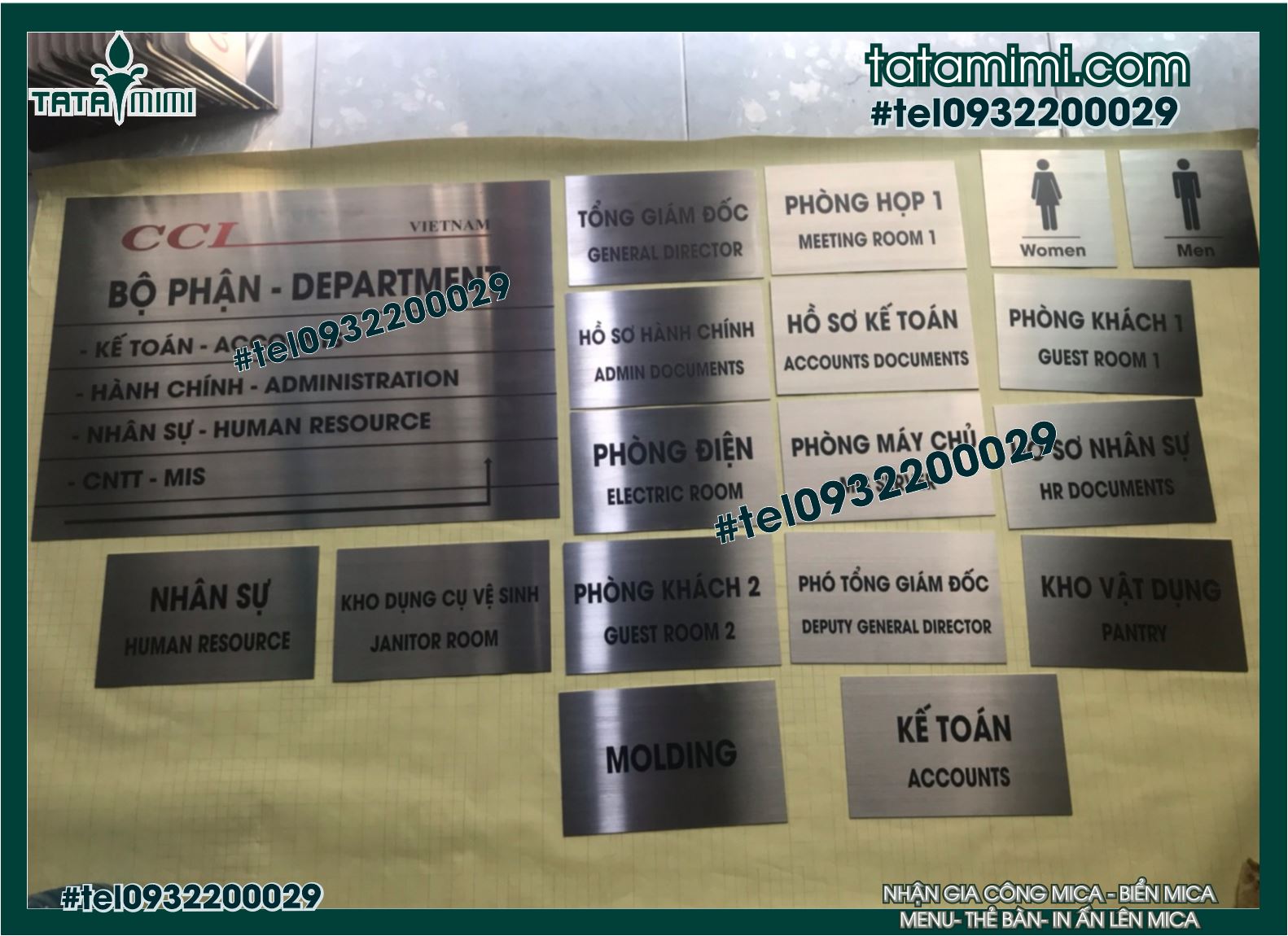 Biển inox phòng ban có thể dán trực tiếp lên tường hoặc để bàn