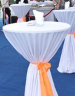 Bàn đứng vải trắng nơ cam Mã TB266 |