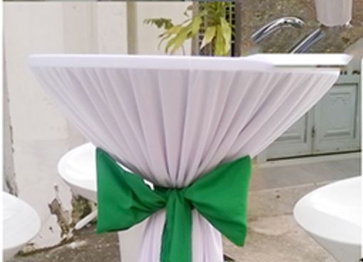 Bàn đứng vải trắng nơ xanh lá cây Mã TB327 |