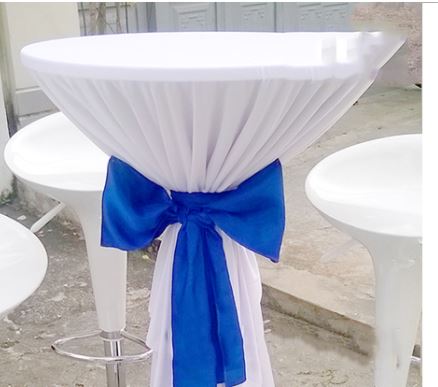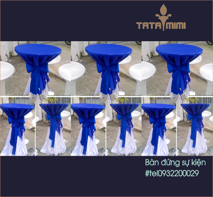 Bàn đứng vải trắng nơ xanh coban Mã TB327 |