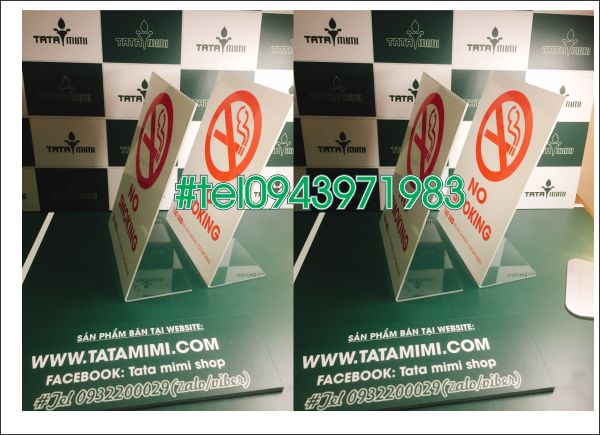 Biển no smoking có thể để bàn hoặc dán tường có thể được thiết kế theo yêu cầu của quý khách hàng.