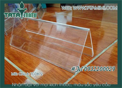 Kệ giá tên sản phẩm được thiết kế khá gọn, đẹp mắt, có độ dày từ 2mm, 3mm, 5mm tùy thuộc vào kích thước đa dạng. Tuy nhiên sản phẩm phổ biến được sử dụng đó là kích thước A3, A4, A5,A6 và màu sắc theo yêu cầu.