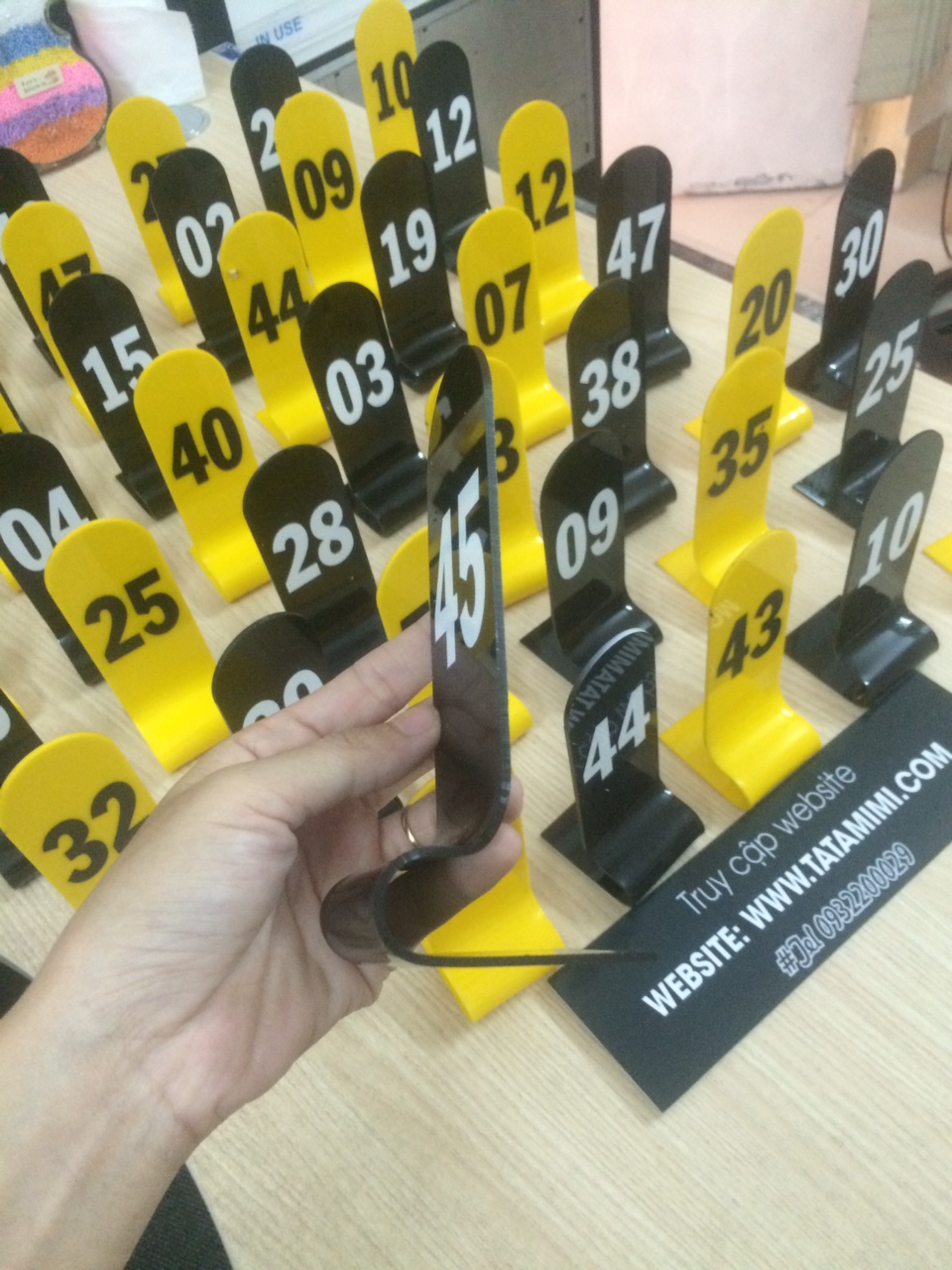 Mica theo yêu cầu phù hợp với nhu cầu của quý khách hàng. Thiết kế biển số bàn Mica màu dáng chữ L được quý khách hàng sử dụng ưa chuộng bởi hình thức, mẫu mã và chất liệu luôn đảm bảo nhu cầu của quý khách ...Chất liệu được làm từ Mica, in tràn decal màu đỏ. Biển số bàn hiên nay được thiết kế đa dạng, phù hợp với nhu cầu sử dụng của khách hàng. Nếu quý khách đang cần làm biển số bàn theo yêu cầu, biển số bàn giá rẻ, biển số bàn đảm bảo chất lượng hãy liên hệ với chúng tôi- Đơn vị chuyên nhân làm ...