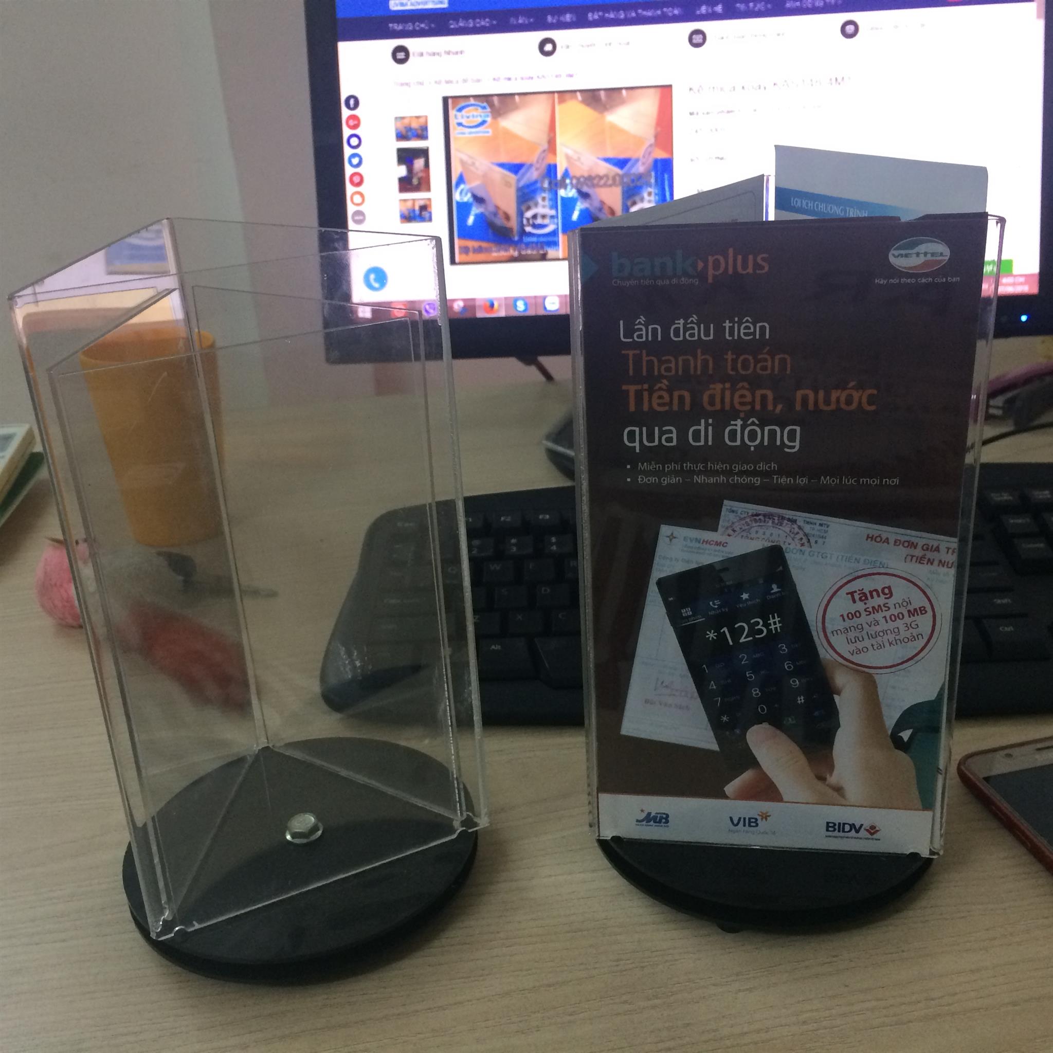 Kệ mica xoay để bàn có thể được dùng để tờ rơi, để tài liệu,kệ đựng hồ sơ, kệ đựng hóa đơn, đựng danh thiếp,đựng mẫu sản phẩm,…là sản phẩm thiết yếu đối với các cửa hàng đơn vị kinh doanh, hay sử dụng trong văn phòng.