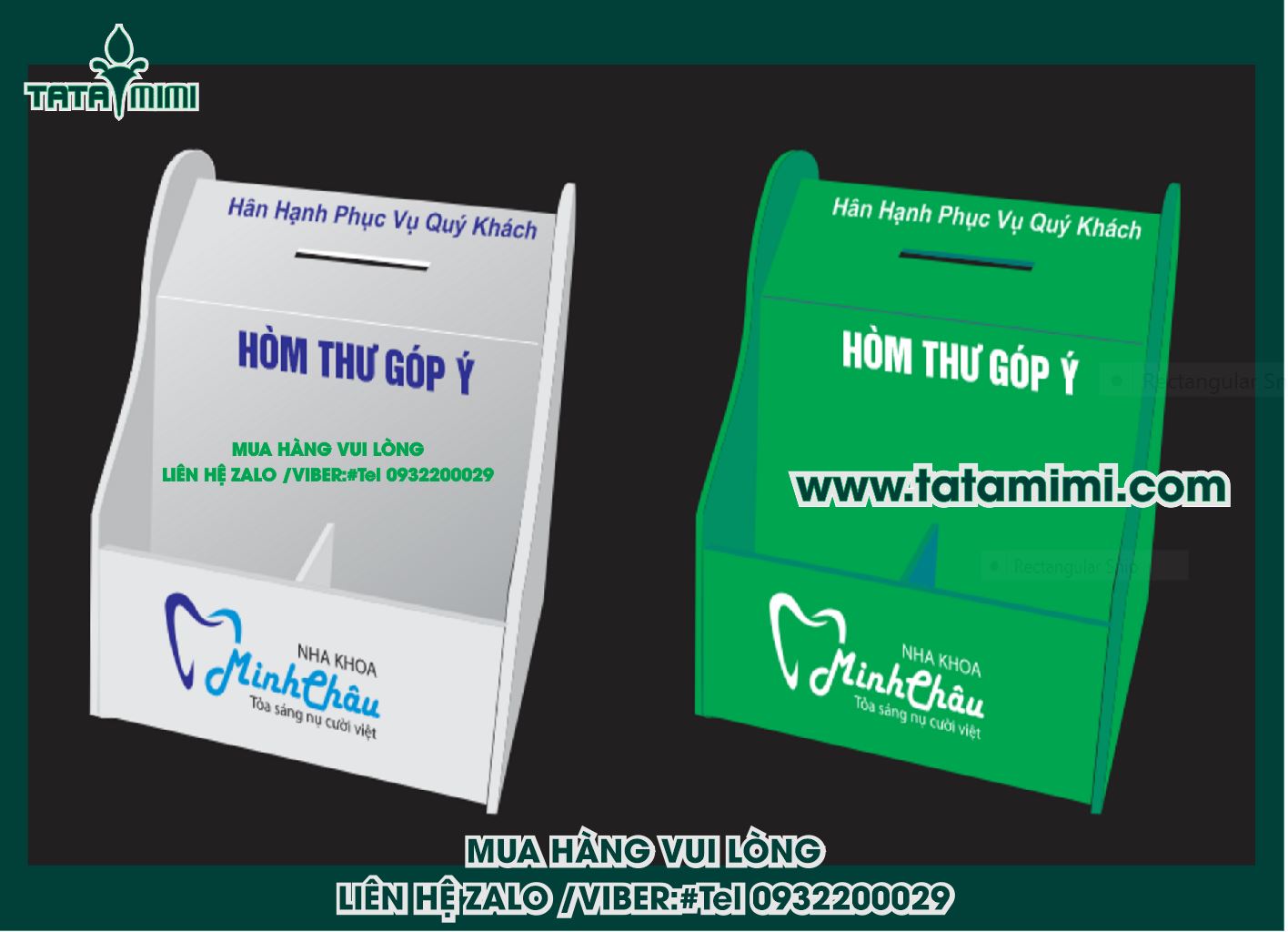 Chúng tôi nhận đặt Hòm Thư góp ý Nha Khoa theo mọi màu sắc mã mica và in ấn theo yêu cầu