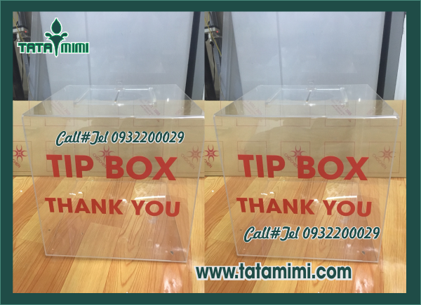 Với mục đích sử dụng Hộp boxtip thiết kế gọn gàng chắc chắn là sản phẩm thùng mica để ở quầy thu tiền, thu ngân khi khách thanh toán sẽ thừa lại khoản tiền nhỏ có thể bỏ vào đó không hoạch toán vào doanh thu của nhà hàng, khách sạn, cửa hàng, công ty.