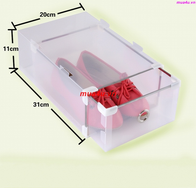 Hộp đựng giầy làm từ chất liệu mica Đài Loan bền đẹp,nhỏ gọn, sáng bóng,dễ vệ sinh giúp kháng hàng mang dễ dàng. Hộp đựng giầy có thể làm từ mica trong hoặc mica màu.