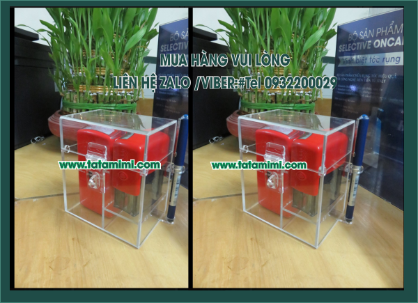 Hộp đựng sản phẩm được làm từ mica Đài Loan, màu trong suốt rất bền và phù hợp với thẩm mỹ nhu cầu của khách hàng. Sản phẩm khi trưng bày trong hộp chụp mica màu trong suốt rất dễ nhìn, dễ quan sát, tạo không gian sang trọng và mang tính thẩm mỹ cao.