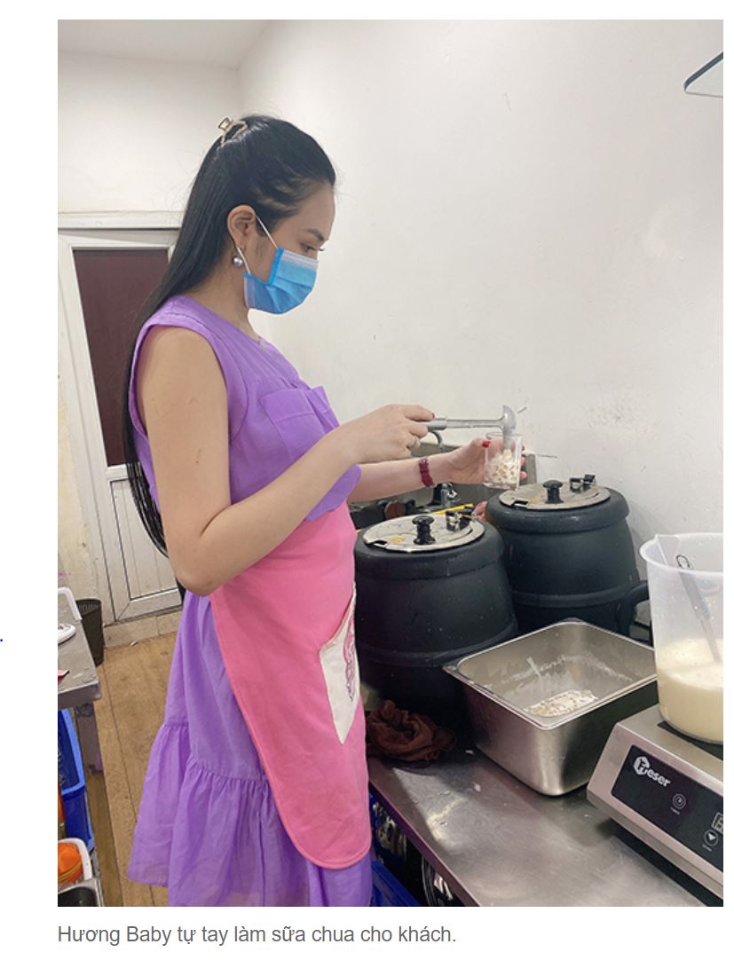 Khai trương cửa hàng sữa chua đầu tiên hồi tháng 5, Hương Baby rất kỳ vọng vào dự án này. Công việc suôn sẻ với hệ thống ngày càng mở rộng, hàng chục cửa hàng liên tiếp được mở trên khắp cả nước. Nhưng rồi trở ngại ập đến khi Covid-19 tái bùng phát. Ngoài hệ thống sữa chua, cô còn có kinh doanh spa và mỹ phẩm. "Thuyền to thì sóng lớn", hệ thống càng lớn thì càng nhiều khó khăn trong mùa dịch khiến Hương Baby đau đầu khi phải đảm bảo thu nhập cho người lao động. "Dù khó khăn, tôi và ông xã vẫn quyết định không giảm lương hay giảm nhân sự vì hiểu rằng các em đều có cuộc sống riêng, phải lo toan nhiều thứ. Tôi thấy may mắn là mình vẫn chưa phải bù lỗ quá nhiều. Tôi giờ chỉ mong sao dịch qua nhanh để kinh tế của mọi người được ổn định", bà xã Tuấn Hưng chia sẻ.