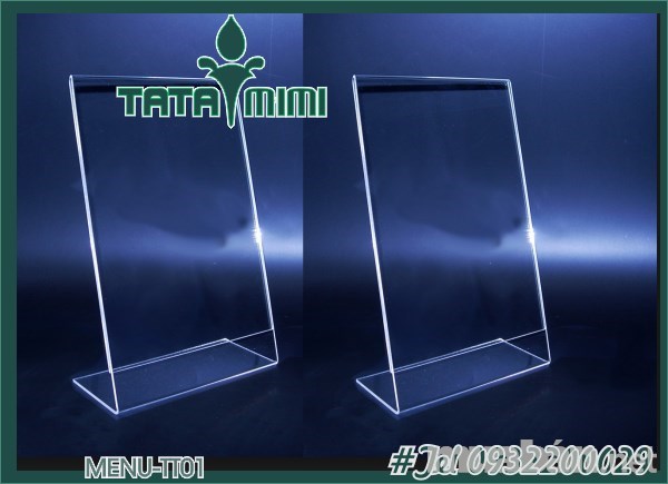 Kệ mica có 2 loại: kệ có đế tam giác rời và kệ mica có để cố định.Kệ mica có kích thước vừa bằng khổ giấy A4 ngoài ra có thể thay đổi theo yêu cầu khách hàng.