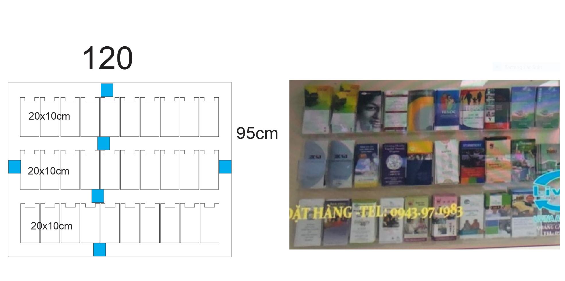 Kệ mica treo tường được làm bằng mica trong đài loan 2mm hoặc 3mm tùy vào độ nặng nhẹ của tờ rơi , tài liệu đựng trong hộp kệ mica treo tường
