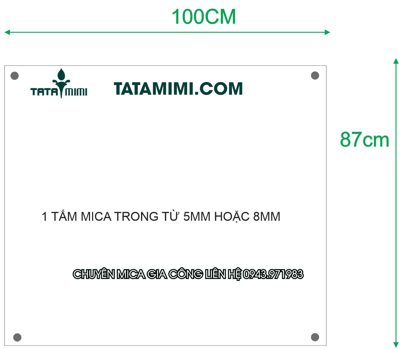 Tấm mica trong 5mm hoặc mica trong 8mm + chốt inox khoan sẵn