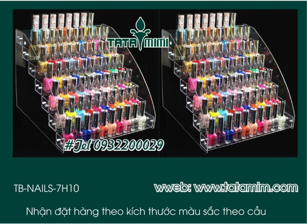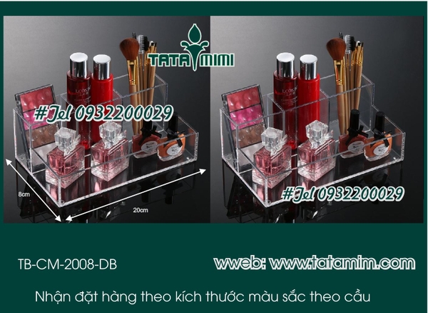 Kệ mỹ phẩm được làm từ chất liệu Mica trong hoặc Mica màu, mica Đài loan 3mm.Sử dụng kệ mỹ phẩm nhằm tăng tính thẩm mỹ, tinh tế, săc sảo cho sản phẩm của bạn.