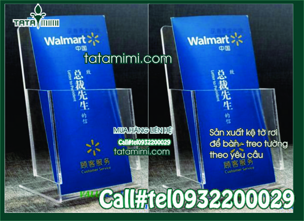 Cung cấp các loại kệ mica đựng tờ rơi chiến dịch quảng cáo, marketing. Tờ rơi là một trong những hình thức quảng cáo cung cấp thông tin rất hiệu quả và phổ biến hiện nay. Khi một doanh nghiệp có chiến lược quảng cáo, marketing mới nhằm kích thích nhu cầu tiêu dùng thì tờ rơi được sử dụng như công cụ quan trọng chiến dịch đó. Tờ rơi có nhiều tại văn phòng, showroom hay các điểm bán lẻ — những nơi mà khách hàng muốn tìm thông tin của sản phẩm, nơi mà doanh nghiệp giới thiệu những chương trinh ưu đãi, khuyến mãi mới .Kệ mica, kệ tờ rơi thường thích hợp dùng cho văn phòng, gia đình,kích thước, số tầng, số ngăn theo yêu cầu của khách hàng,có thể dán decan theo yêu cầu, có kệ để card visit. Kệ mica đựng tờ rơi là một trong rất nhiều sản phẩm được gia công từ mica của .