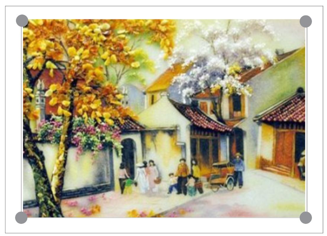 - Cho tranh vào khung (mẹo là nên lấy 4 miếng băng dính 2 mặt nhỏ dán cố định tranh đỡ xê dịch