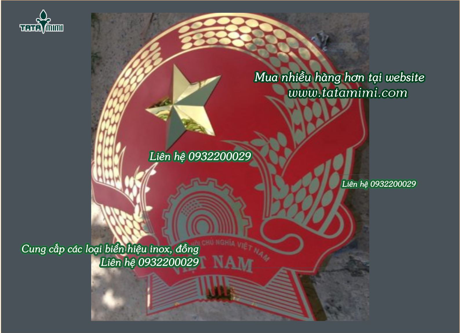 Là đơn vị chuyên nhận làm Quốc Huy bằng đồng uy tín nhất, giá cả hợp lý, chất lượng đảm bảo tốt nhất, nhận đặt làm theo kích thước yêu cầu.Với mẫu quốc huy đã được chọn có hình bông lúa ở hai bên tượng trưng cho sự phát triển của nông nghiêp,mãu bánh xe tượng trưng cho công nghiệp ở giữa có hình ngôi sao và sơn màu đỏ tượng trưng cho màu cờ của đất nước đưới bánh se có chữ Cộng hòa xã hội chủ nghĩa việt nam. Quốc huy việt nam làm phương pháp ăn mòn điện phân. Chúng tôi chuyên chế tác thi công quốc huy treo các cơ quan nhà nước,trạm quốc huy đồng,huy hiệu,logo nghành.Phương pháp làm quốc huy là ăn mòn kim loại ưu điểm sắc nét đẹp ,làm phim song cho ăn mòn trên đồng tấm hoặc inox sau đó phủ lớp bảo vệ giúp quốc huy bền chắc với thời gian.