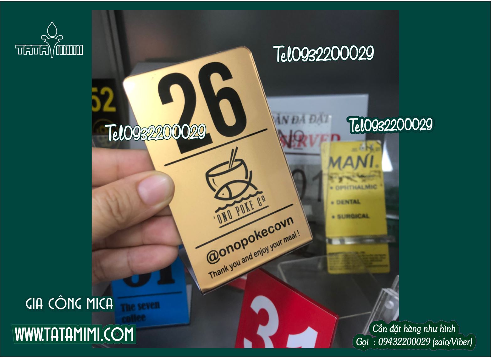 Biển số bàn Nhũ đồng được làm từ mica trong và nội dung được xử lý mặt sau của mica