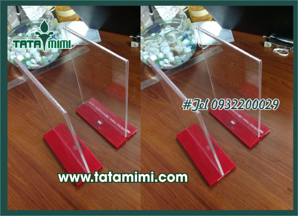 - Biển số bàn mica màu đỏ được làm 1 mặt chữ L hoặc 2 mặt chữ A