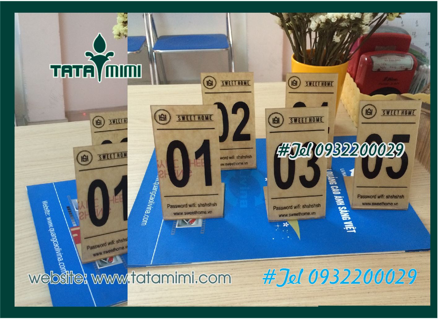 Biển số bàn được dùng nhiều ở các quán café, các quán ăn, nhà hàng. Chúng tôi luôn đánh số bàn sao cho phù hợp nhất để dễ dàng quản lý.