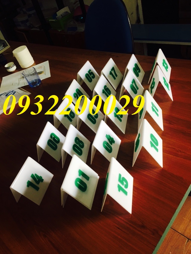 Biển số bàn Mica là biển để bàn được dùng trong các nhà hàng, khách sạn, quán café, quá ăn.Biển số bàn được sản xuất theo yêu cầu về mọi kích thước, màu sắc. Chất liệu biển số bàn là inox hoặc biển số bàn mica theo thiết kế theo yêu cầu.