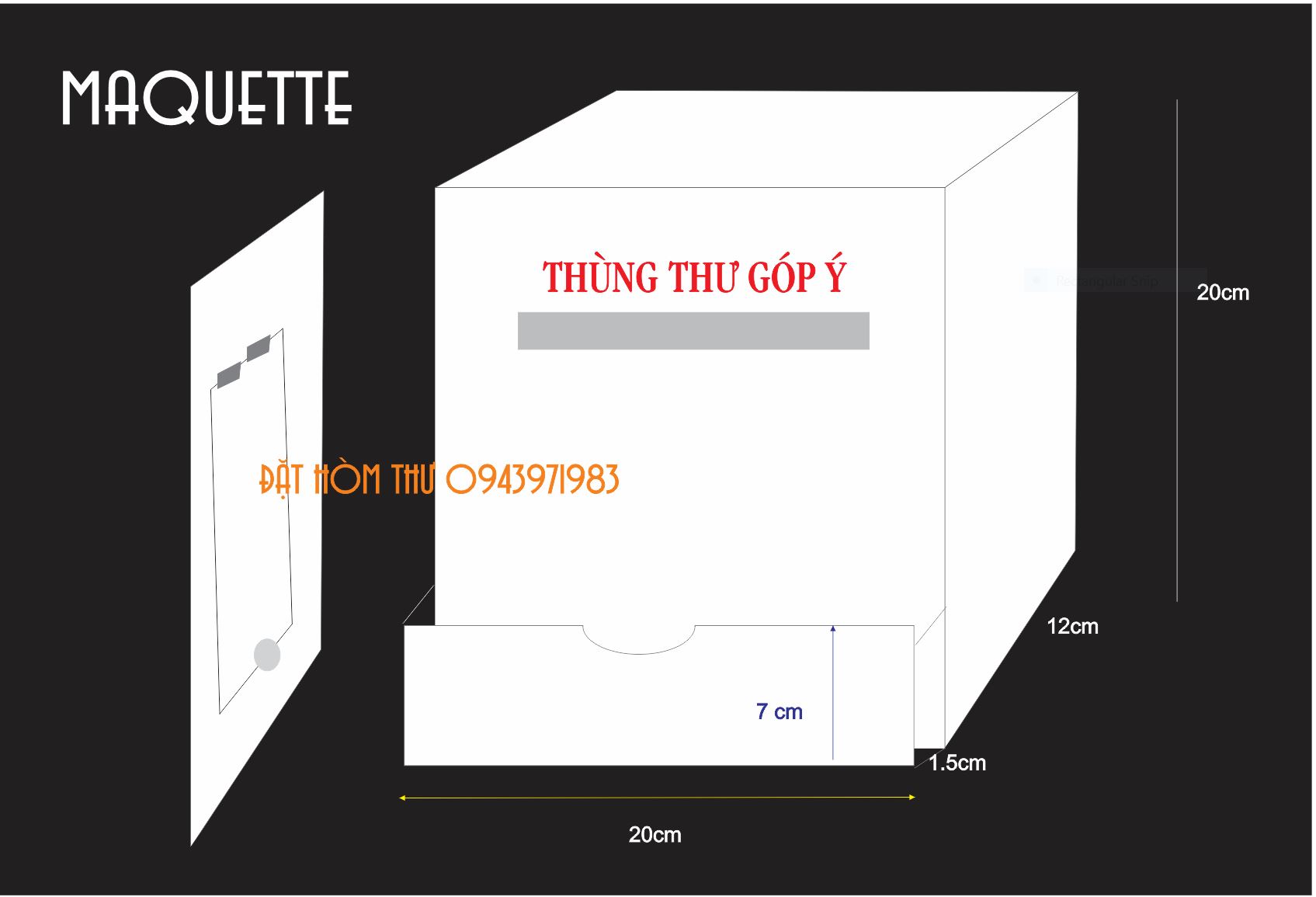 Kích thước hòm thư góp ý, thùng thư góp ý trắng sữa như hình