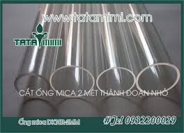 Mica ống, Mica tròn, mica trụ, Ống mica. Tên gọi : Mica ống, Mica tròn, mica trụ, Ống mica. Quy trình sản xuất-Uốn Thành phẩm tư tấm hoặc đổ khuôn theo yêu cầu. Độ dày thành ống từ 2mm đến 10mm hoặc 20mm. Đường kính ngoài từ 4mm đến 1000mm. Độ dài của ống : 2000mm (tức 2 mét).