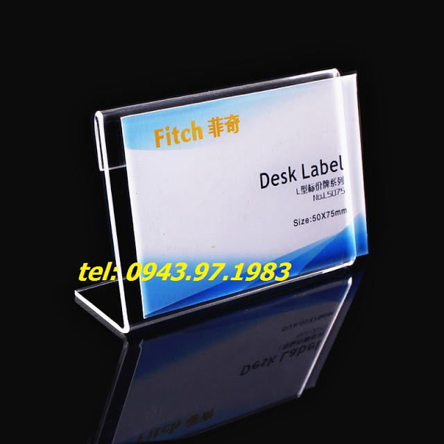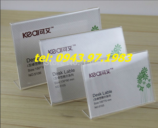 Kệ giá tên sản phẩm, kệ giá tiên thường được thiết kế theo kích thước 6x10cm, sử dụng chất liệu Mica trong Đài Loan 2mm. Kê giá tiền, kệ giá tên sản phẩm luôn được thiết kế theo kiểu dáng chữ L, chữ A, hình quạt, hình tròn…