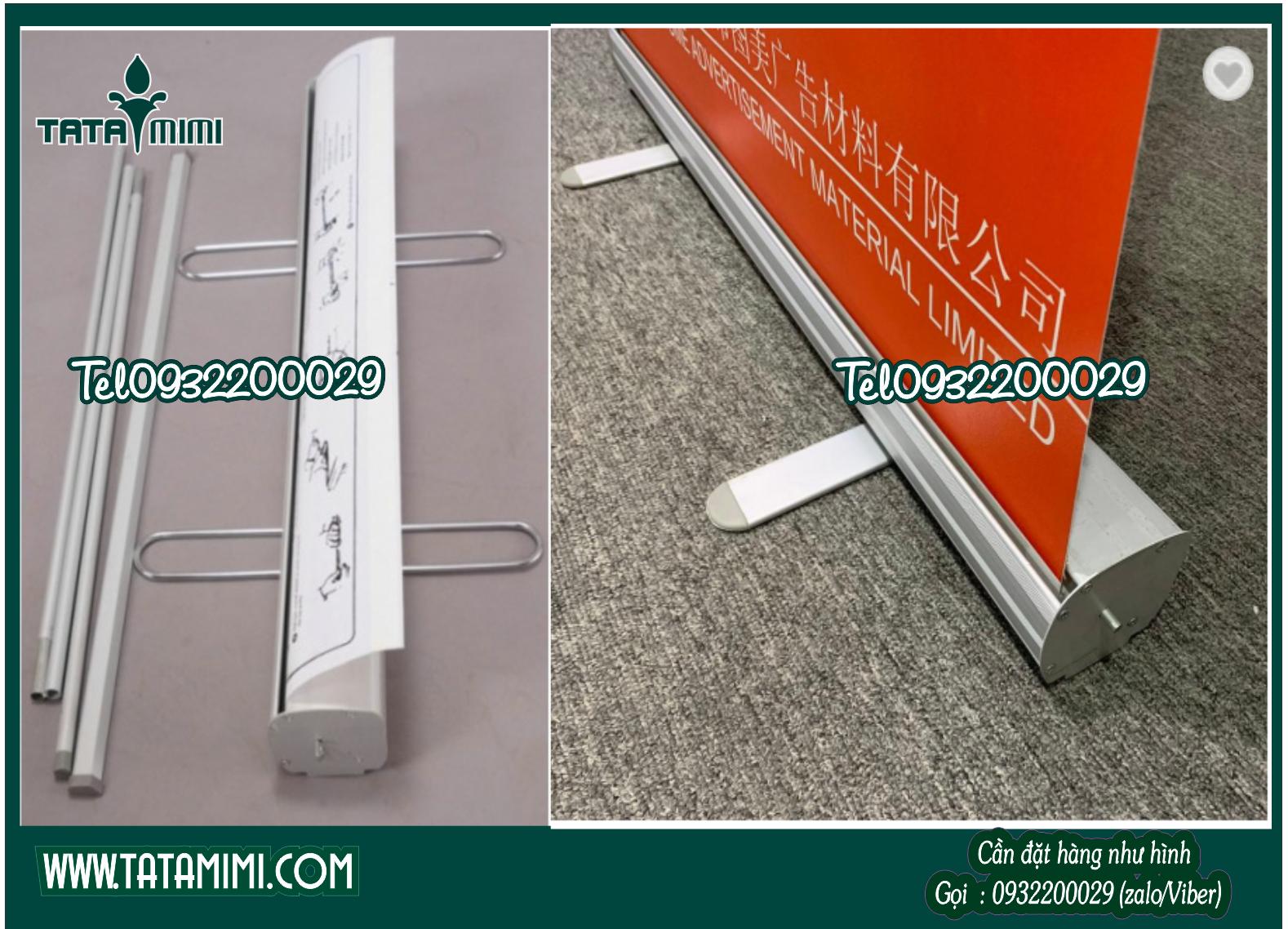 Standee quảng cáo gấp gọn dễ mang đi ,Standee cuốn,standee giá cuốn, standee giá chữ X, cung cấp kệ standee,kệ chữ X chất lượng giá rẻ được sản xuất theo hình thức kết hợp bởi khung sắt, sơn phun hoặc sơn tĩnh điện, decal hoặc decal pp được in kỹ thuật số ngoài trời bồi formex gắn lên khung sắt bằng vít và keo chuyên dụng.Khi Quý khách đặt standy nên xác định vị trí trưng bày là loại trong nhà hay ngoài trời để có thể lựa chọn chính xác, vì loại standee ngoài trời có cấu tạo vững chắc hơn loại trong nhà và thường được làm bằng inox để có thể chịu được lực cản của gió mạnh, loại này có giá thành cao hơn nhiều so với loại trong nhà.