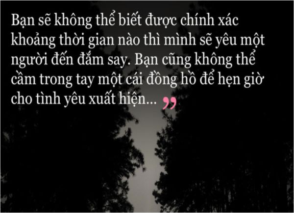 5. Tôi đã luôn tin rằng trên đời này tình yêu thật lòng thật dạ vẫn còn tồn tại, khi mình quan tâm và thương yêu ai đó bằng cả tấm lòng. Thế nhưng, tất cả những gì xảy ra trước mắt tôi hôm nay đã khiến niềm tin trong tối vụn vỡ mất rồi. Thất vọng!