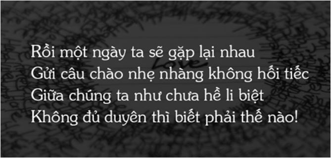 Trong khi chờ anh em cũng phải đi tìm người dành cho đời mình, anh không thể ích kỷ níu giữ em mãi. Người đó cũng chờ em như cái cách anh chờ người dành cho đời anh đúng không? Anh ấy thật hạnh phúc vì có em. Anh cũng thật hạnh phúc vì anh từng… có em.