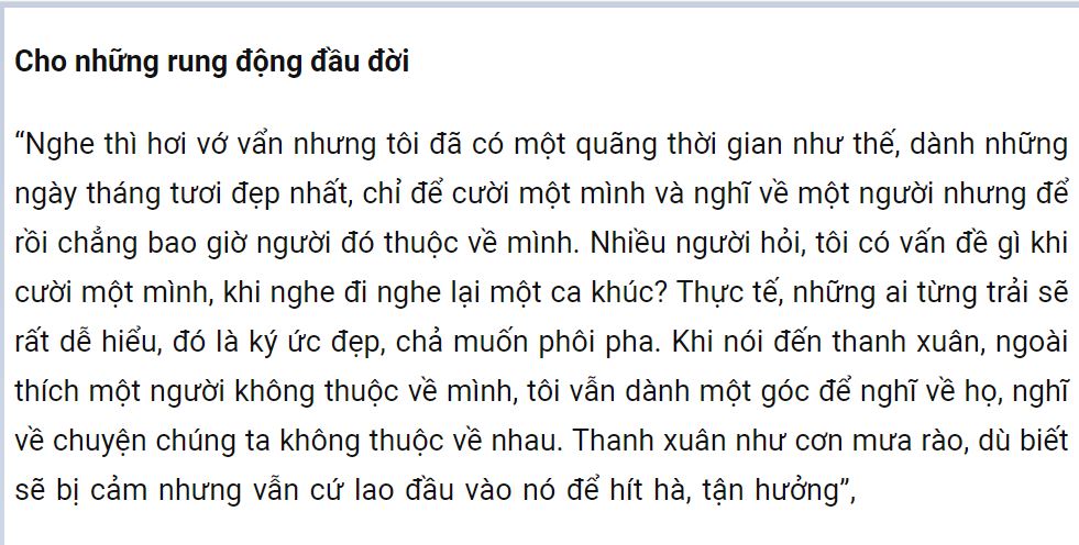 cũng có những rung động đầu đời, cũng có 1 tình yêu đơn phương dữ dội trong lòng , rồi cũng có những rung động khác lạ với những người không thuộc về mình,