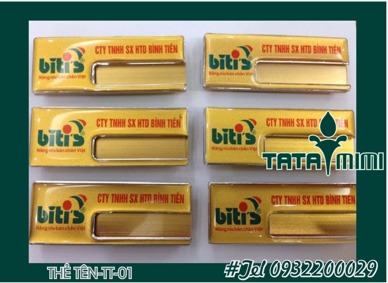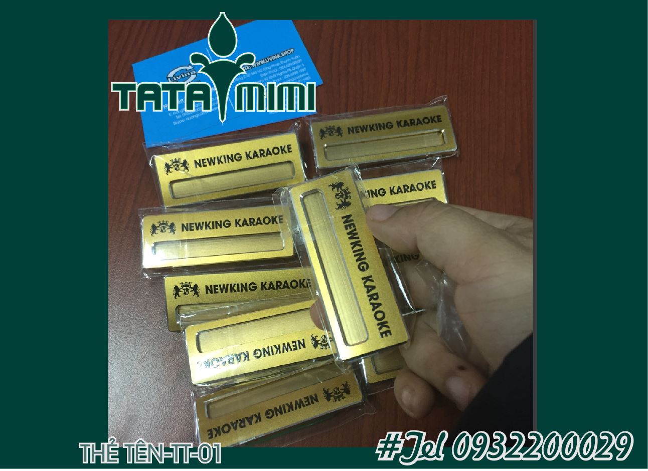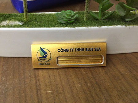 Tên Sản phẩm : Thẻ tên nhân viên màu vàng đồng, Logo cố định, tên nhân viên tự in giấy cho vào