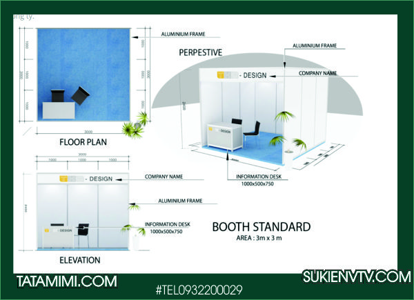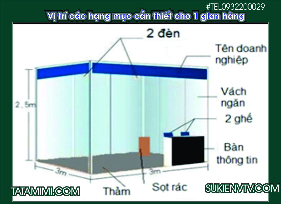 - Một gian hàng tiêu chuẩn có kích thước là 3x3x2,5.
