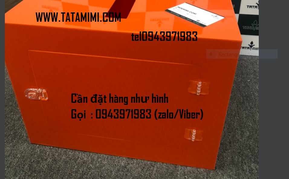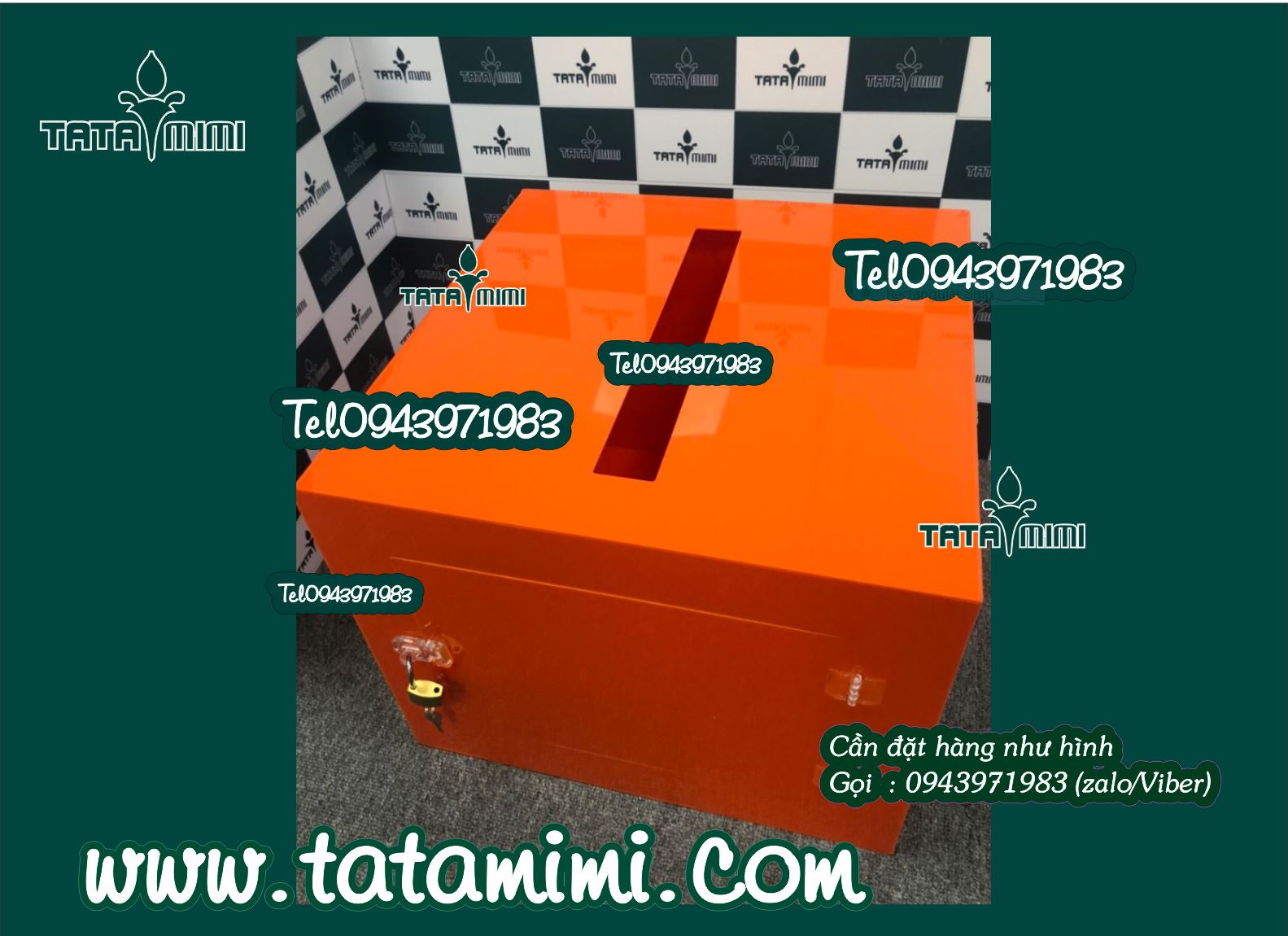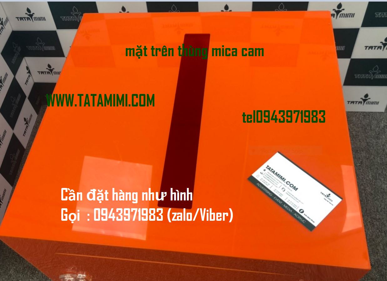 thùng mica màu cam khi chưa có khóa mini , thùng có móc mica và khuy cửa mica