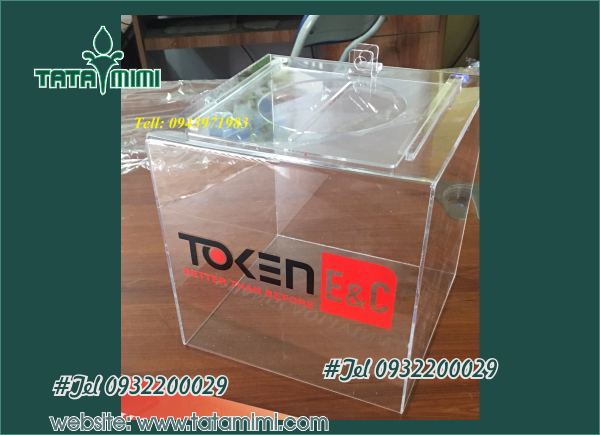 - Hòm mica có thể trang trí logo công ty,tên thương hiệu hoặc tên chương trình
