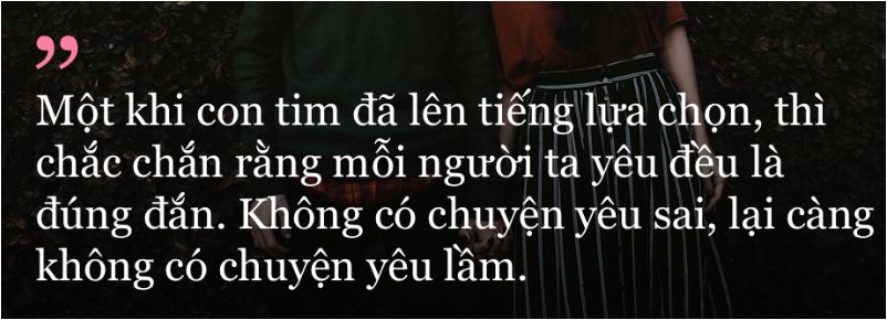 Còn một khi con tim đã lên tiếng lựa chọn, thì chắc chắn rằng mỗi người ta yêu đều là đúng đắn. Không có chuyện yêu sai, lại càng không có chuyện yêu lầm.