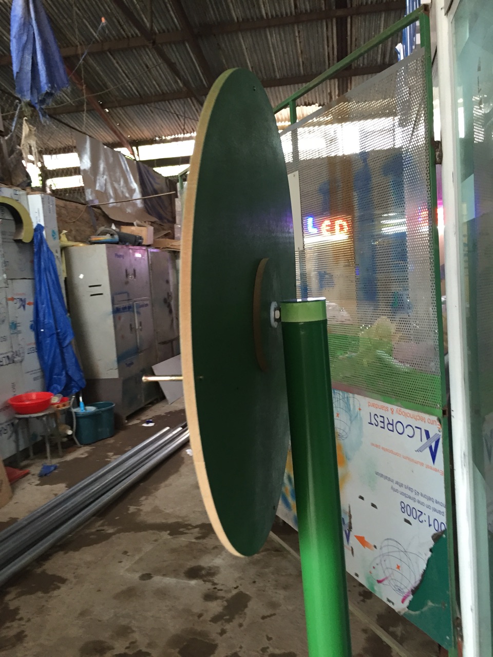 - Mặt vòng quay bằng gỗ, chân vòng quay bằng sắt