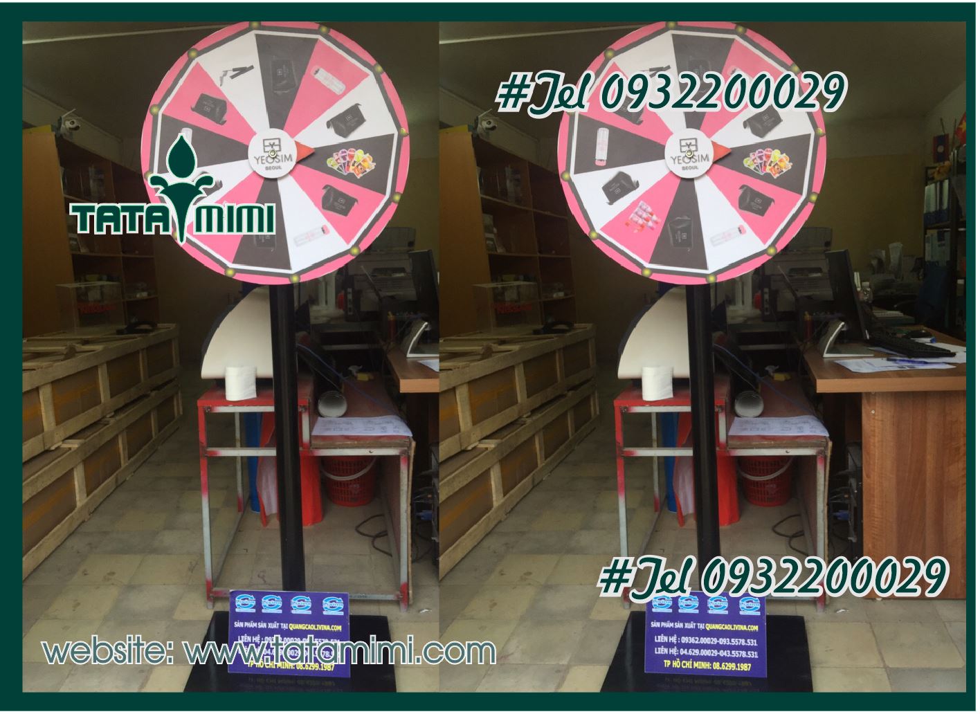 Vòng quay may mắn hiện đang là công cụ quảng cáo và thu hút sự chú ý nhiều nhất,bởi giá thành rẻ,là vòng quay may mắn trúng thưởng các mặt hàng sản phẩm đang tiếp thị,thu hút sự tò mò và tìm hiểu của khách hàng,màu sắc được thiết kế nổi bật,thu hút thị giác của người tiêu dùng.Đặc biệt,vòng quay may mắn trúng thưởng giá rẻ còn có thể thay hình ảnh qua từng chương trình,gọn nhẹ và sản xuất nhanh chóng.