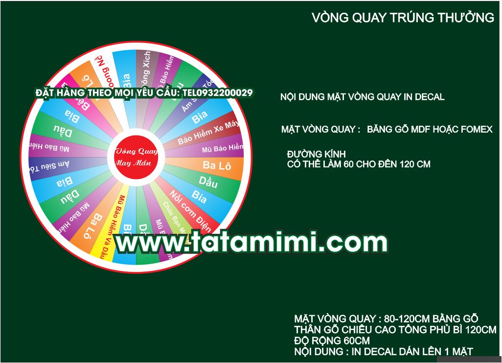 - Mặt vòng quay bằng gỗ MDF 10mm có đường kính 100 cm